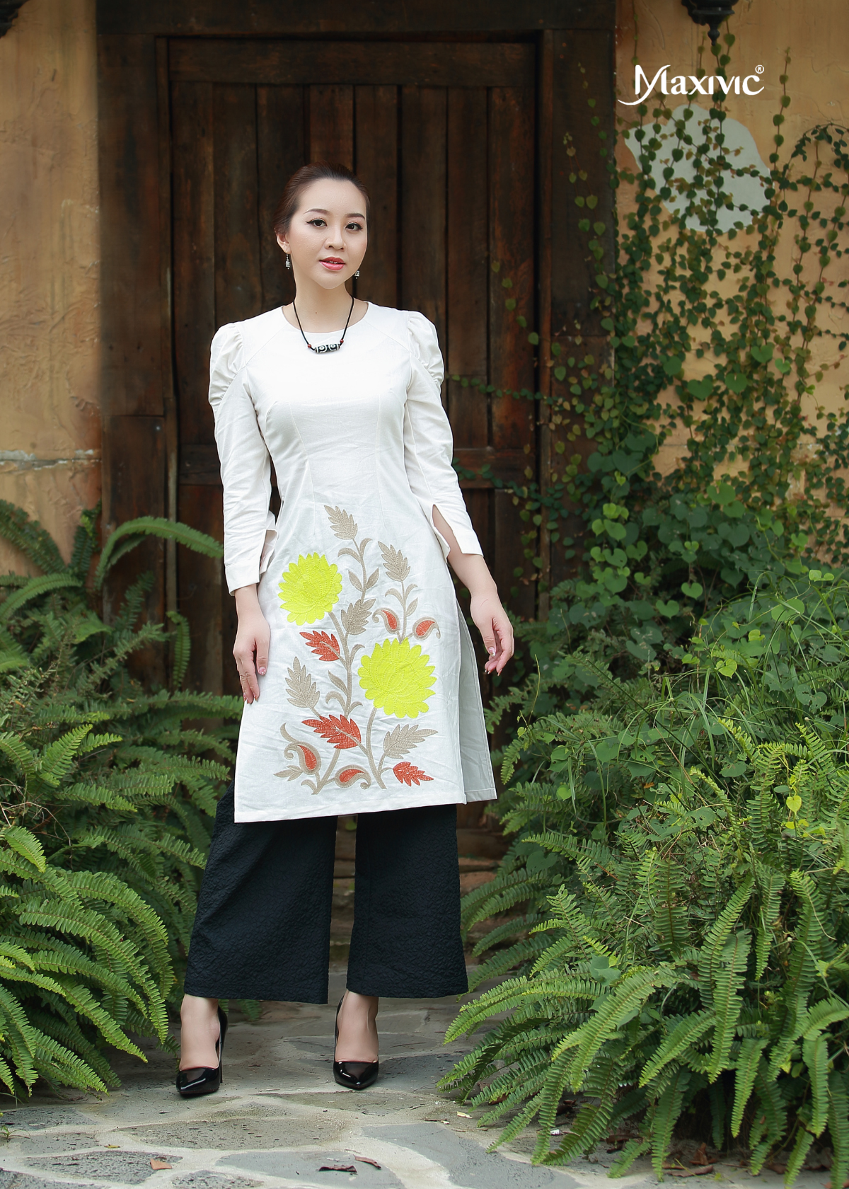 - Màu sắc: Kem (màu sắc, họa tiết y như hình, hình ảnh sản phẩm do Maxivic tự chụp, khách hàng yên tâm khi sử dụng vì chất lượng của vải, đường may tỉ mỉ, tôn lên nét đẹp của người mặc)
