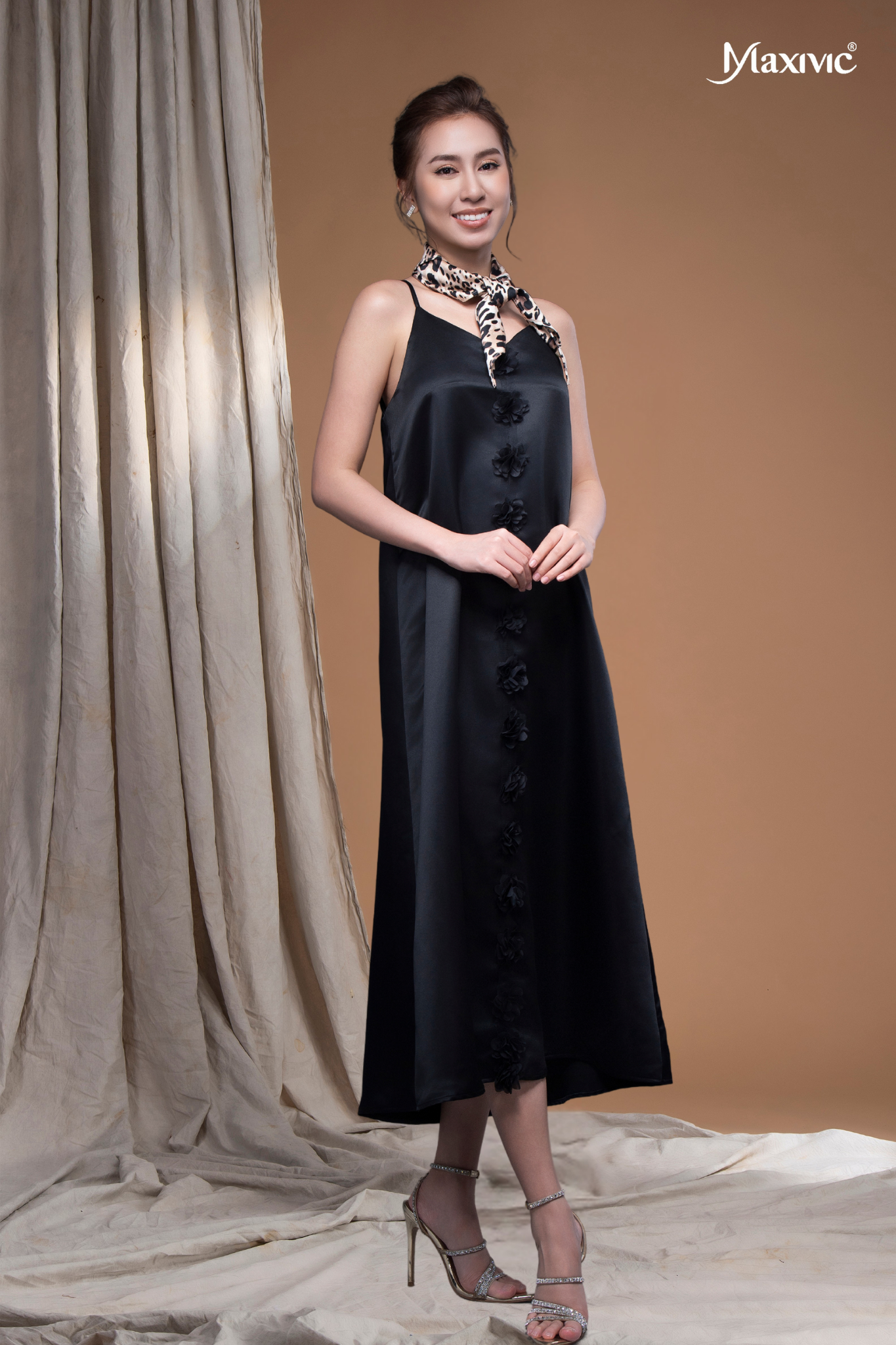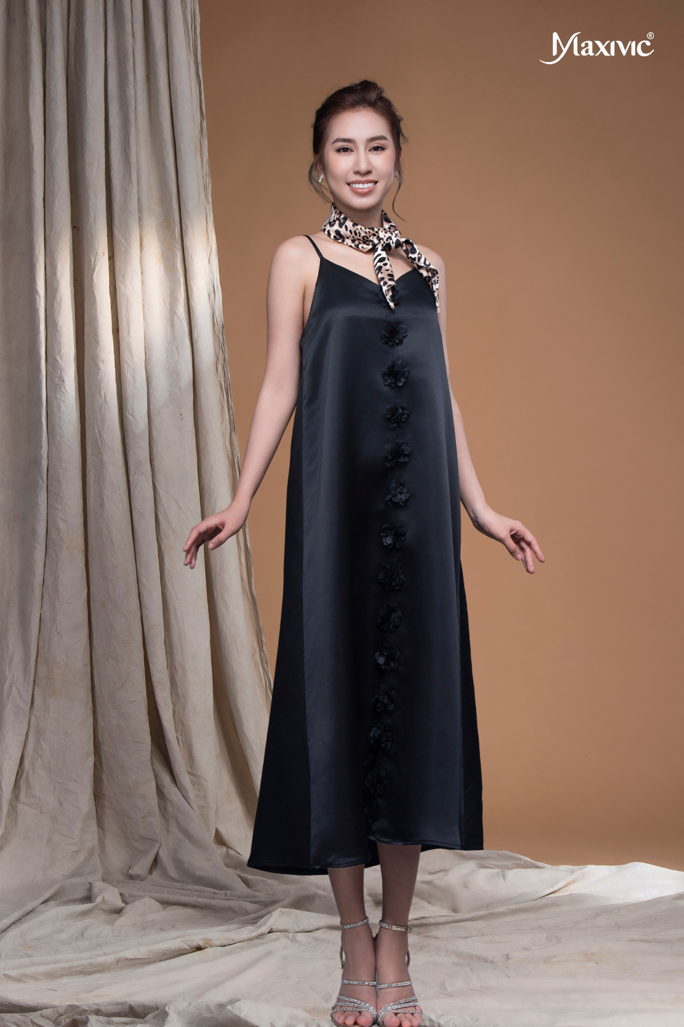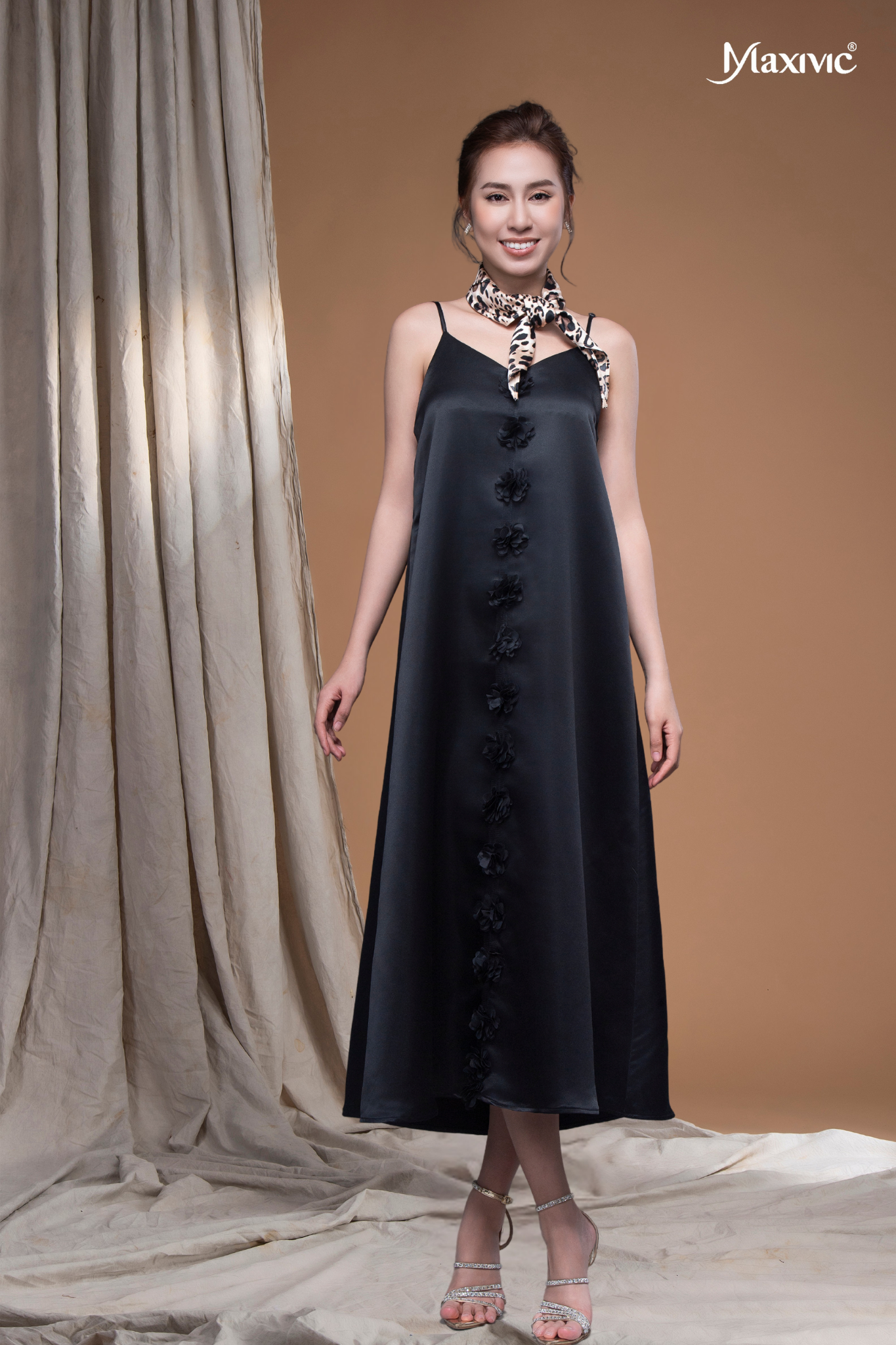 Màu sắc: đen (màu sắc, họa tiết y như hình, hình ảnh sản phẩm do Maxivic tự chụp, khách hàng yên tâm khi sử dụng vì chất lượng của vải, đường may tỉ mỉ, tôn lên nét đẹp của người mặc)