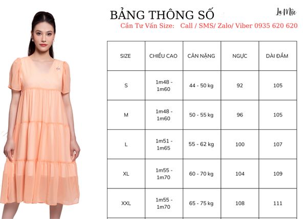 Với thiết kế dáng babydoll, phối cùng cổ chữ V tay ngắn giúp che bụng hiệu quả, mang lại cho nàng sự trẻ trung, năng động. Sản phẩm được sử dụng chất liệu chiffon cao cấp 2 lớp lót lụa, độ bền cao, mang đến sự thoải mái, dễ chịu nhất cho người mặc.