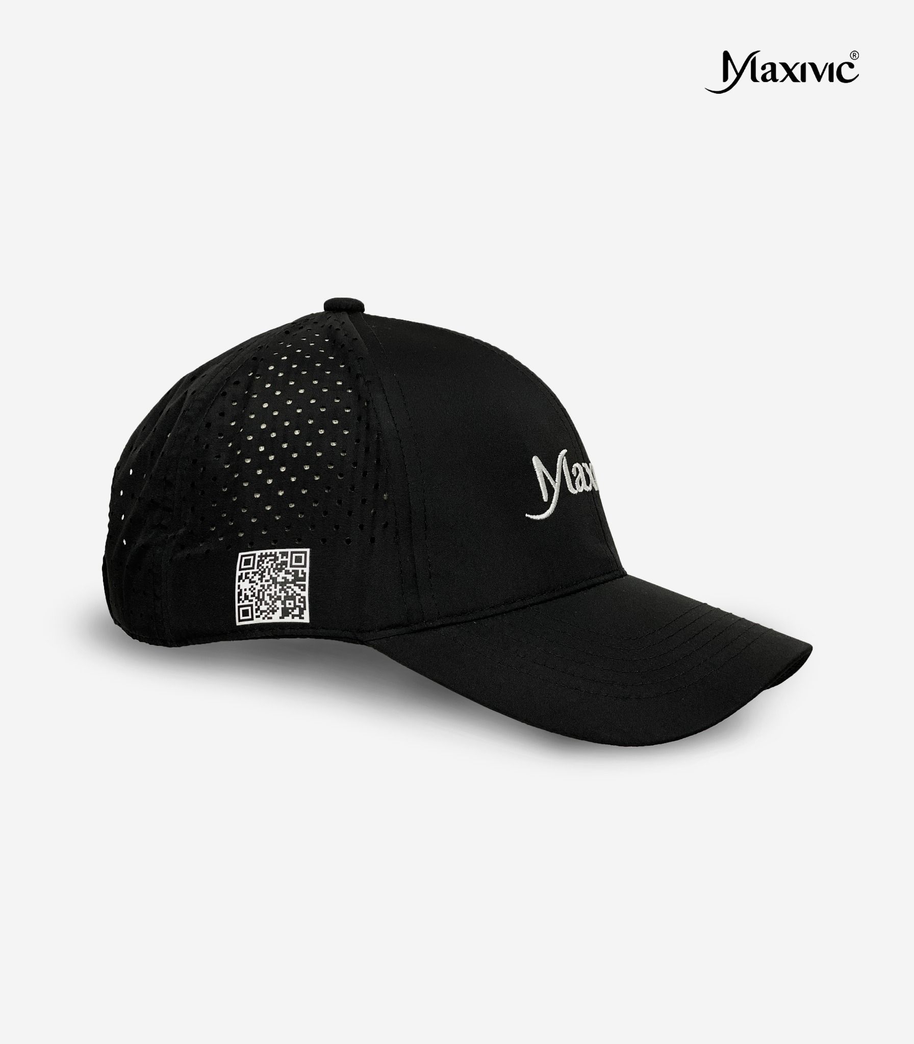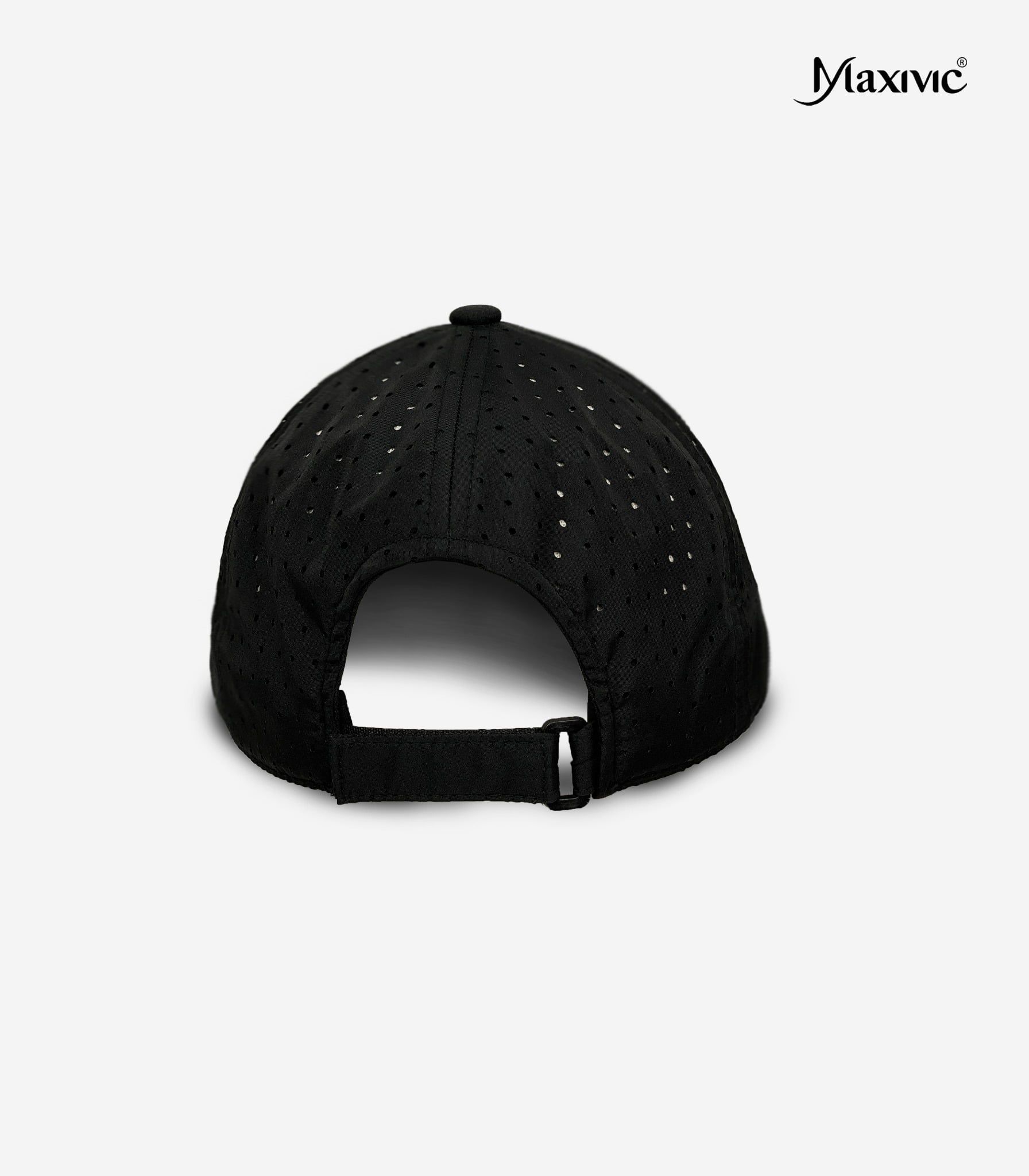 Mũ lưỡi trai dáng thể thao, lưỡi trai cong, có dây điều chỉnh và phần lỗ thoáng khí phía sau, mang lại phong cách trẻ trung và năng động.