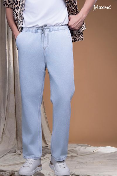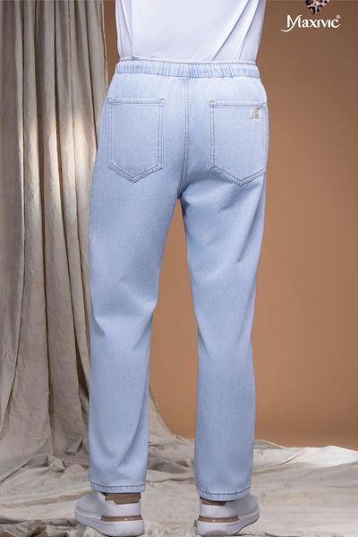 - Quần ống đứng màu jeans, cạp chun co giãn mang lại sự năng động và thoải mái cho người mặc.