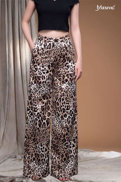 - Quần ống rộng lưng cao hoạ tiết da beo giúp che khuyết điểm tốt, mang lại sự thanh lịch và thoải mái cho người mặc.